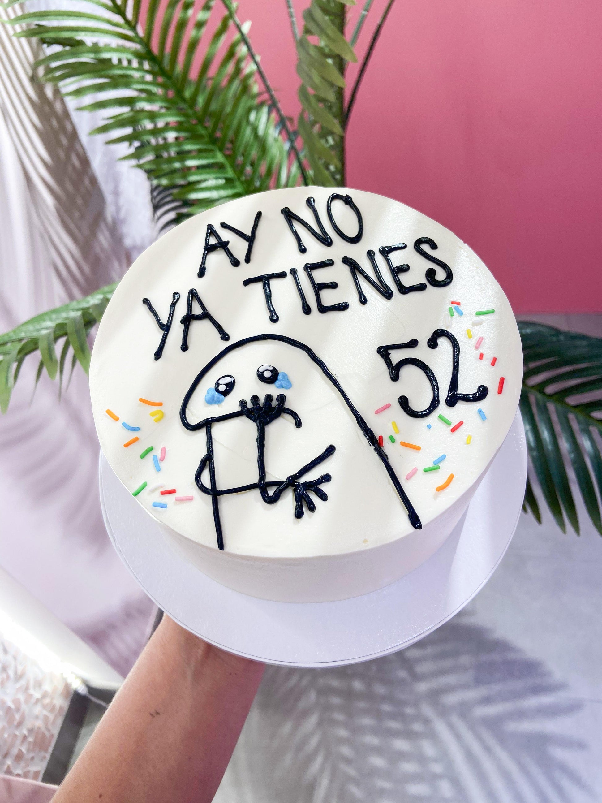 Un pastel con mucho humor para celebrar la vida y las edades con estilo. Decorado con buttercream blanco, sprinkles de colores y un diseño minimalista y divertido que roba sonrisas. Perfecto para quienes disfrutan los cumpleaños con un toque sarcástico y lleno de cariño. Porque cumplir años nunca fue tan sabroso (ni tan gracioso).