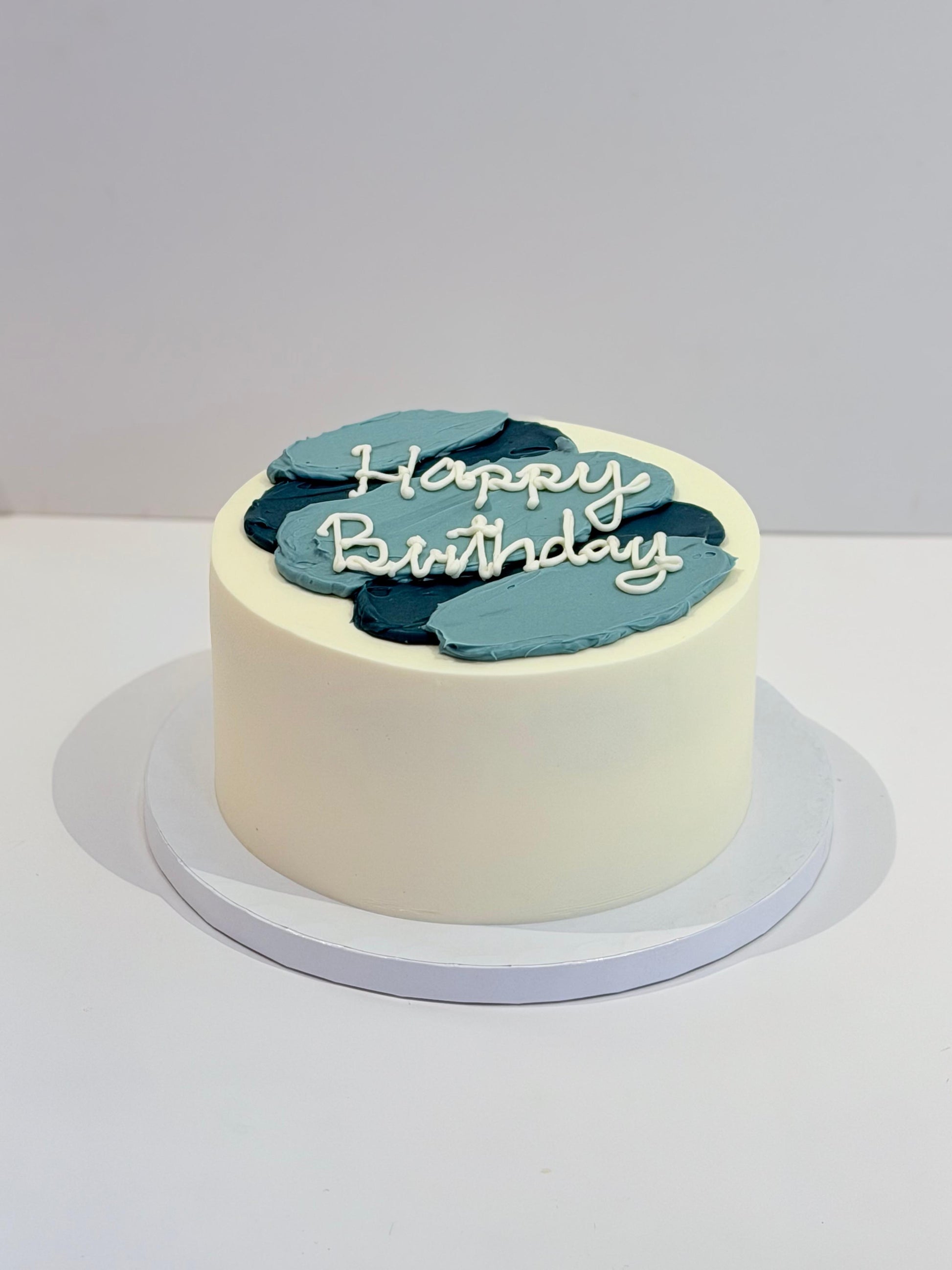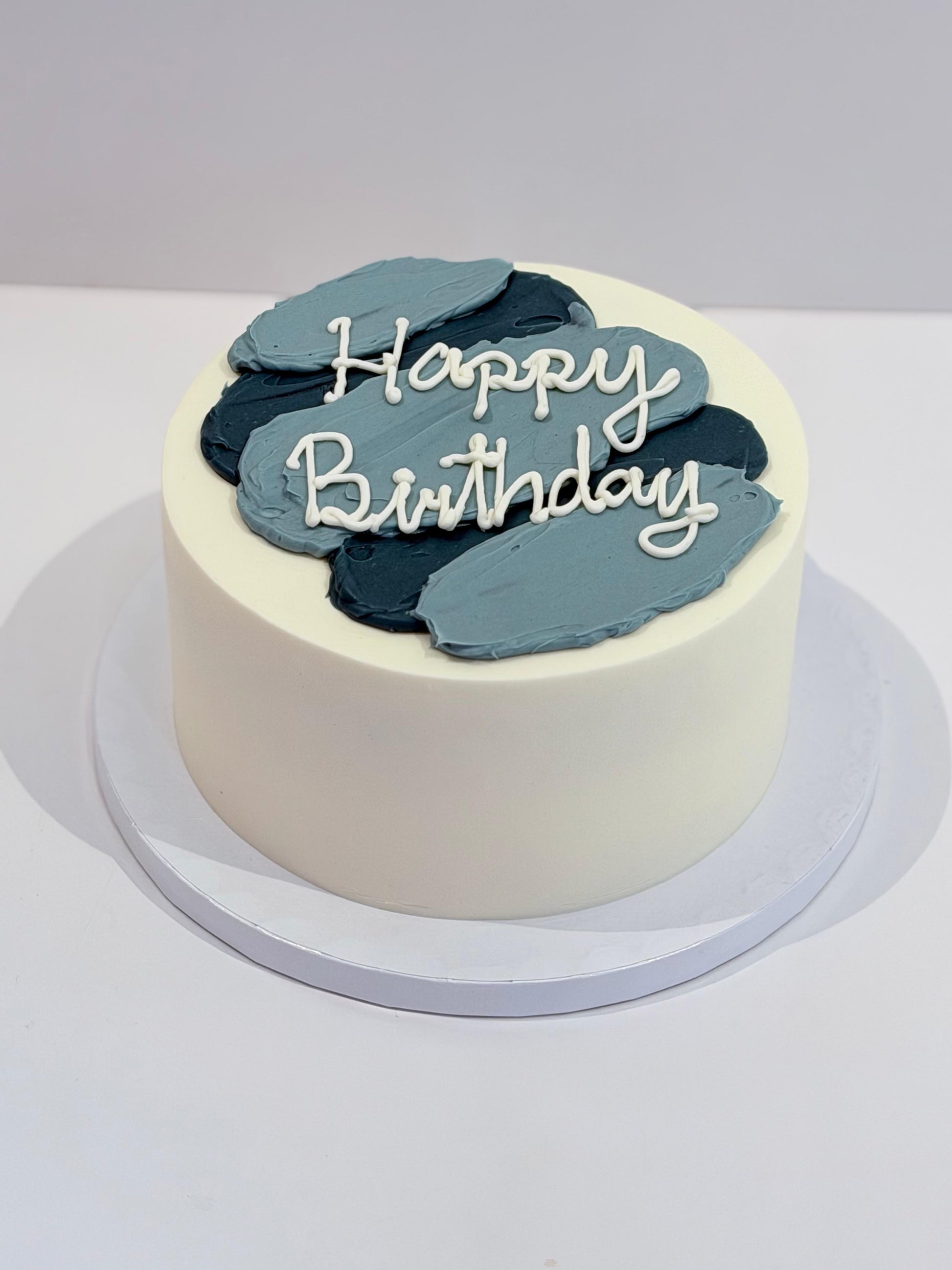 Diseño minimalista con acabado blanco liso y pinceladas artísticas en la superficie. Moderno, limpio y perfecto para quienes buscan un pastel elegante sin excesos.